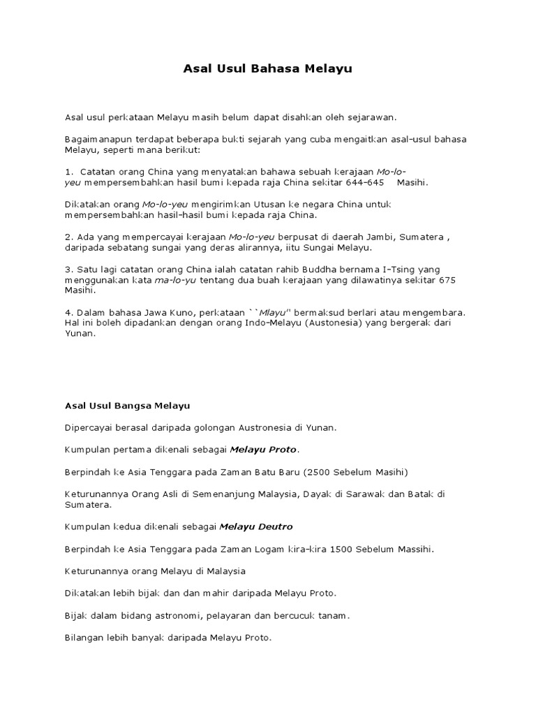 Asal usul bahasa melayu asal usul perkataan melayu masih belum dapat disahkan oleh sejarawan.