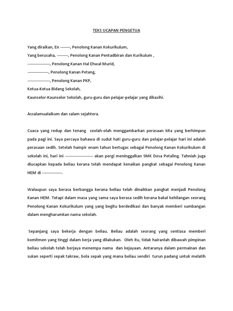 Related : Ucapan Perpisahan Pertukaran Tempat Kerja - Alhamdulillah, bersyukur kita kehadrat ilahi kerana dengan limpah kurnianya dapat kita berkumpul pada hari ini di majlis perpisahan saya yang akan mula bertugas di..